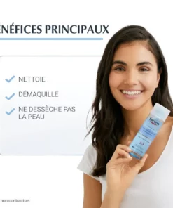 Eau micellaire hydratante qui démaquille, nettoie et tonifie en un seul geste, tout en préservant la barrière des peaux sensibles.