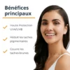 Filtres UV photostables — SPF50+ : protection large spectre au quotidien.