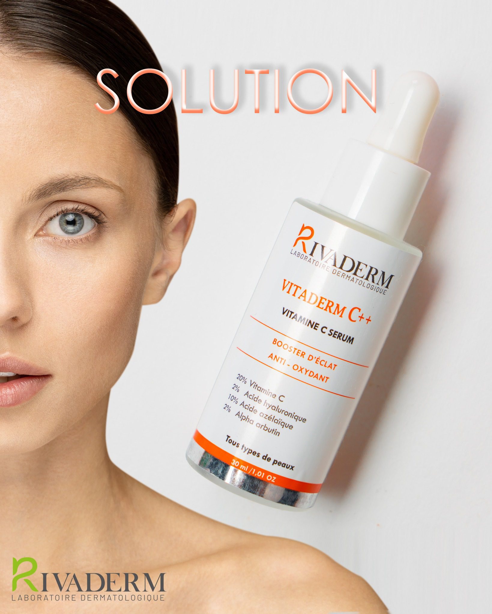 Le sérum vitamine C RIVADERM Vitaderm C++ est un soin expert conçu pour illuminer le teint, corriger les taches pigmentaires et lutter contre le vieillissement cutané. Formulé pour répondre aux besoins des peaux exposées au soleil, notamment en Tunisie, il offre une action antioxydante puissante et une excellente tolérance cutanée.