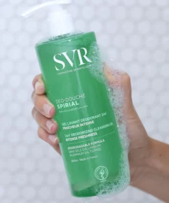 Conçu pour l’hygiène des peaux sensibles sujettes aux odeurs persistantes, Spirial Déo-Douche associe des tensioactifs doux à des agents capteurs d’odeurs pour nettoyer efficacement tout en respectant le film hydrolipidique. Des chélateurs et tampons acides aident à limiter la dégradation bactérienne de la sueur à l’origine des odeurs. La glycérine maintient l’hydratation pour éviter les sensations de tiraillement. Sa mousse fine se rince facilement et laisse une sensation de peau propre, confortable et fraîche. Usage quotidien possible, après le sport ou en période chaude. Non comédogène, pH physiologique.